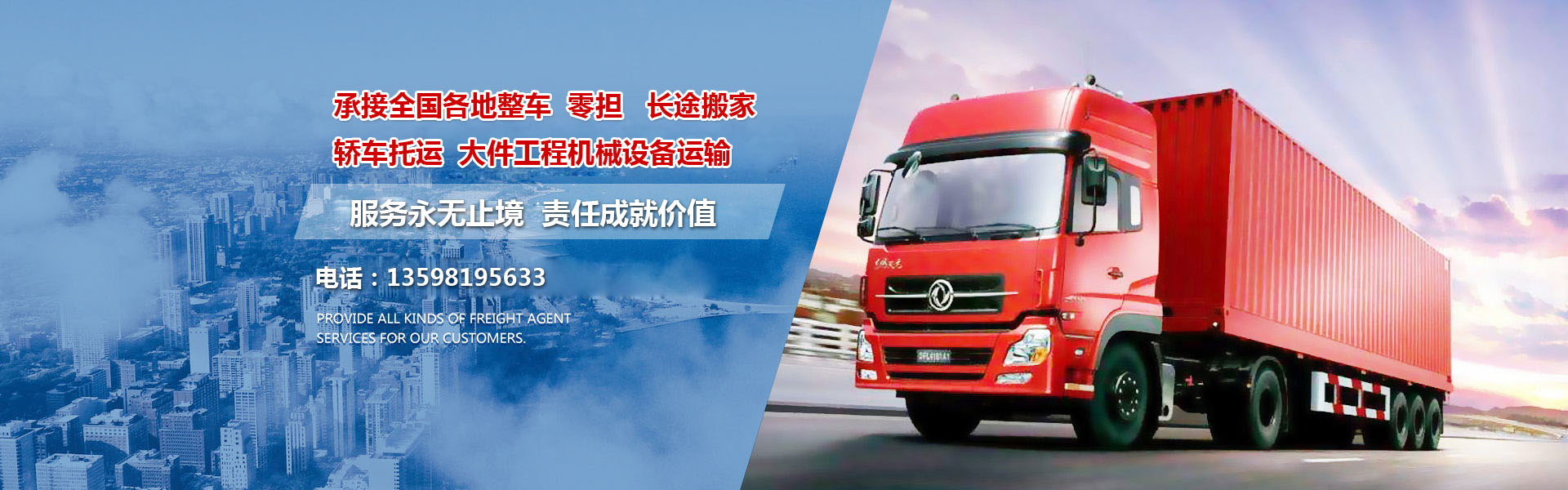 洛陽(yáng)關(guān)林萬(wàn)順貨運(yùn),從事貨物運(yùn)輸,一直秉承“誠(chéng)信經(jīng)營(yíng),注重信譽(yù),費(fèi)用合理”的服務(wù)理念。我們與洛陽(yáng)各大廠(chǎng)礦企業(yè)和洛陽(yáng)商戶(hù)均有合作關(guān)系,受到廣大客戶(hù)的好評(píng)和信任。